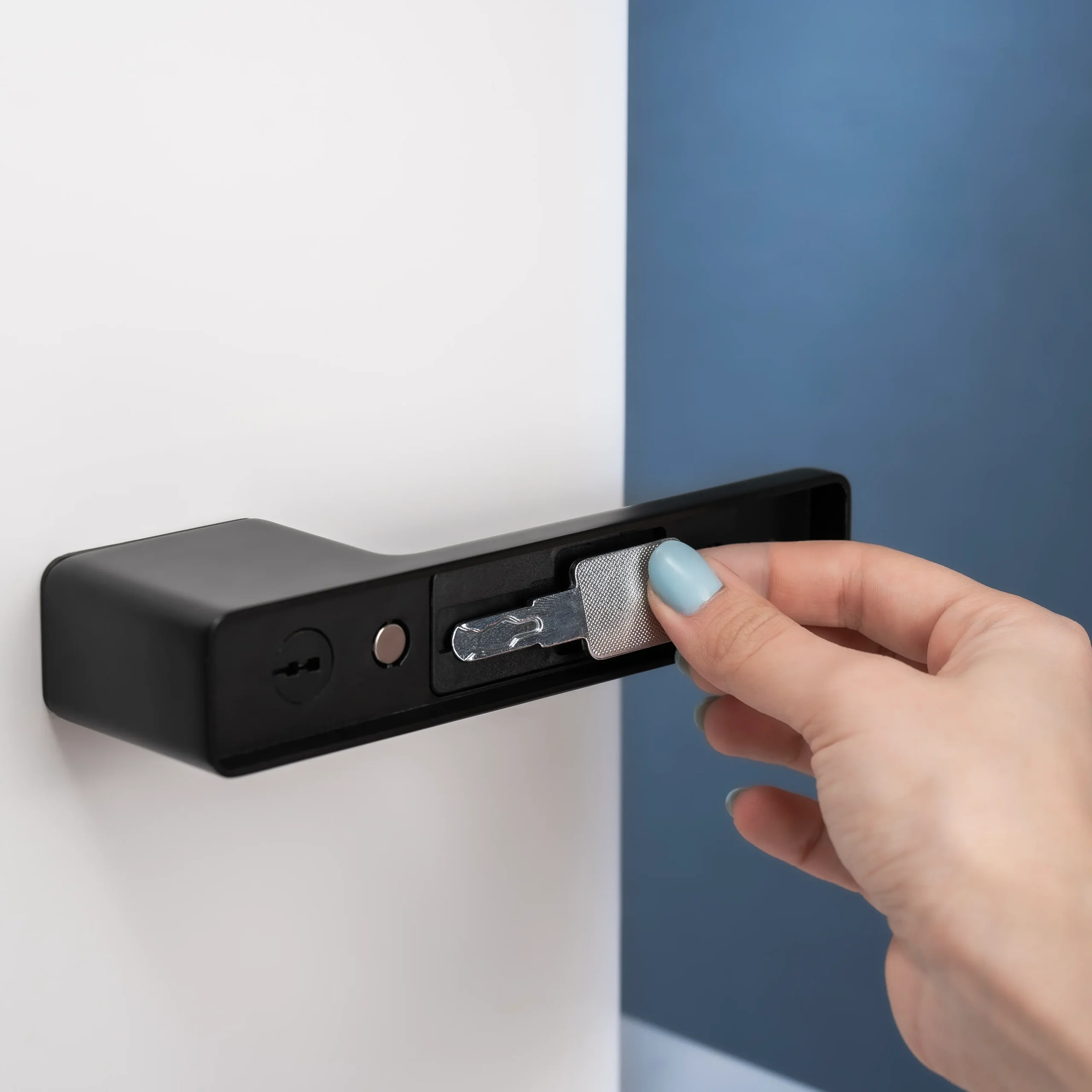 سیستم قفل این دستگیره با کدگذاری مارپیچی ارتقاء یافته است و تعداد کلیدها از ۲ به ۳ عدد افزایش یافته است تا مدیریت دسترسی راحتتر و ایمنتر شود در نظر داشته باشید که جنس کلید ها از جنس برنج میباشد. محل قفل در کنار دستگیره تعبیه شده تا در فضاهای عمومی یا پرتردد، دسترسی سریع و آسان برای کاربران فراهم شود.همچنین این دستگیره نیازی به سیلندر ندارد به دلیل آنکه این دستگیره دارای سیلندر داخلی میباشد.